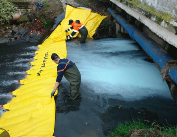 Les barrières anti-pollution Water-Gate sont votre meilleur allié que ce soit pour réagir rapidement lors d’un déversement de produits toxiques dans un ruisseau ou pour une intervention planifiée de décontamination des eaux.